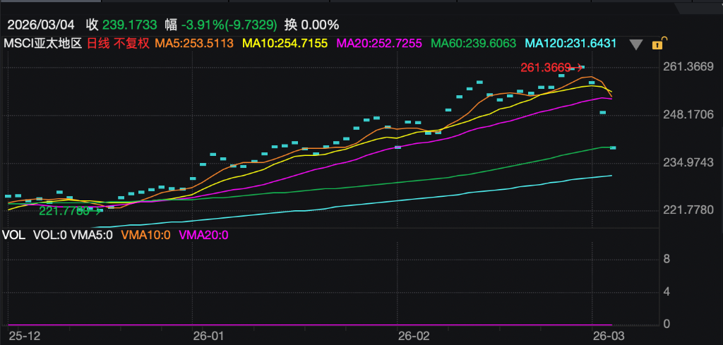 MSCI亚太指数本周累计下跌6%,而同期标普500指数仅微跌0.1%,全球资金正加速从亚洲回流美国避险。美元同步走强,进一步印证了这一资本流向的逆转。