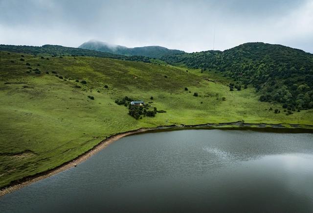 它就那样安安静静地躺在群山的环抱里,美得不张扬,自顾自地清澈着。湖水透亮得能一眼望到底,水底柔柔的水草随着水流轻轻摇曳,宛如少女飘动的裙边,曼妙而灵动。