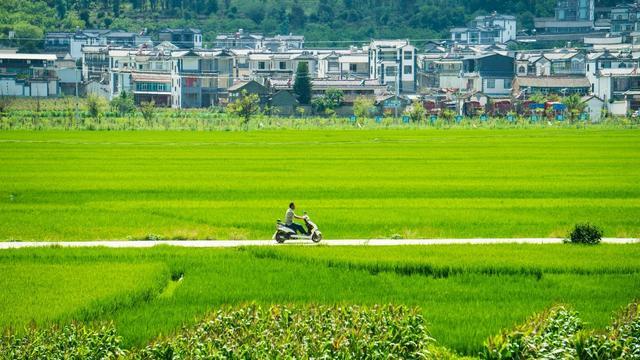 湖水一样清澈见底,映着远处苍山朦胧的倒影。湖边是大片金黄的稻田和星罗棋布的鱼塘,戴着大草帽的白族老乡在田里弯腰劳作的身影,远远望去,就是一幅宁静悠远的水墨画,看得人心都软了。